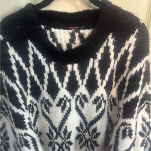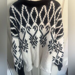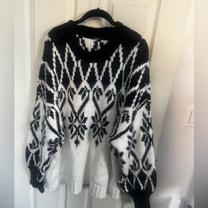 Free People Oversized Chunky Knit Fireside Tunic Sweater Ivory Black Medium