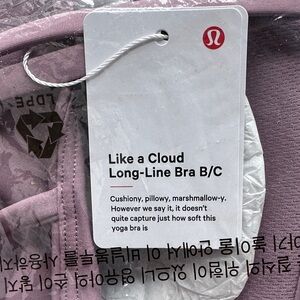 NWT - Lululemon Like a Cloud Longline Bra in Lavender, size 14, B/C cup. Perfect for workouts or lounging.