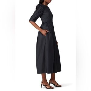 This elegant black midi dress is perfect for any occasion. Its classic design offers a timeless look.