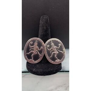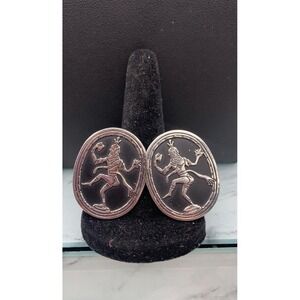 Vintage Swank Siam Thailand Dancer Cufflinks Silver Tone Black Enamel