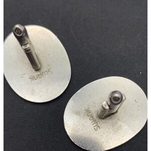 The Vintage Swank Siam Thailand Dancer Cufflinks are a unique and stylish accessory for men. These silver tone cufflinks feature black enamel detailing, giving a retro and ethnic vibe to any outfit. Signed by Swank, the brand known for its quality and craftsmanship, these cufflinks are a one-of-a-kind piece with a vintage charm. Perfect for any occasion, these cufflinks are a fashionable and original choice for those looking to add a touch of art, travel, and pagan style to their ensemble.