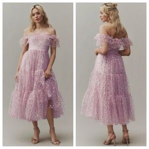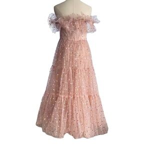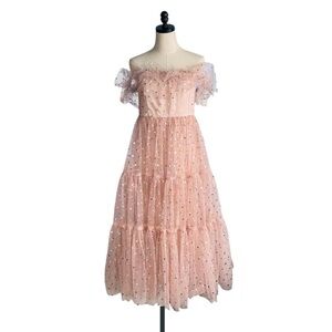 Anthropologie BHLDN Cecilia Off-The-Shoulder Polka Dot Tulle Midi | MEDIUM NWT