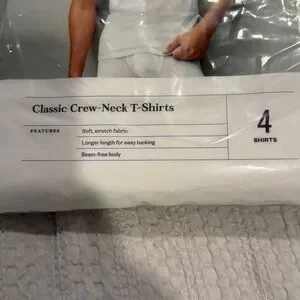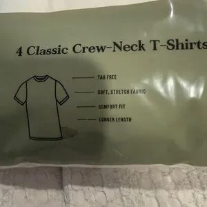 (18)Set of 4 classic crew-neck t-shirts. Soft and stretchy fabric. Ideal for layering or wearing alone.