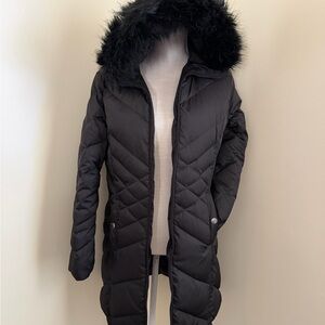 Kenneth Cole Reaction Black Hooded Puffer Jacket Chic black puffer with a warm hood. Ideal for cold weather.