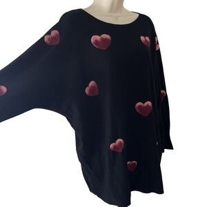 Aaeda Black Heart Sweater Dolman Sleeve Boat Neck Valentine Cozy Top Women's 1X