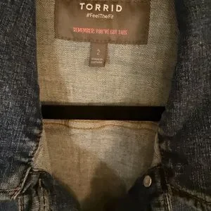 Stylish dark blue denim jacket. Features button closure and classic design.