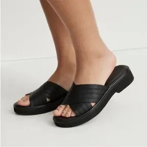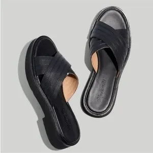 Madewell NWOB Louisa Sandals 11 US Black Leather Crisscross Slide Slip On Flat