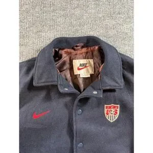 Keywords: Vintage Nike, US Soccer, Varsity Jacket, Letterman Jacket, 90s Sportswear, USA Soccer, Streetwear, Retro Nike, Wool Leather Jacket, Collegiate Style, Soccer Core, Gorpcore, Americana