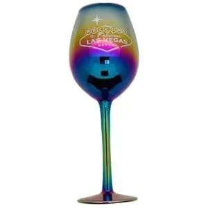 Rainbow Color Reflective Wine Glass with the iconic Las Vegas sign printed on the front! 🍷