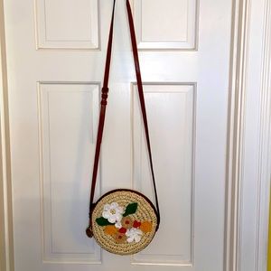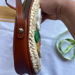 Patricia Nash straw and leather bag with flower details.