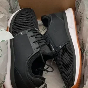 Stylish black sneakers with white and gum accents. Perfect for everyday wear and walking.