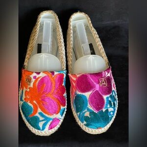 Angelozano Espedrille Slip-on Flats Embroidered Floral Women's Sz 7.5 bright