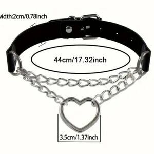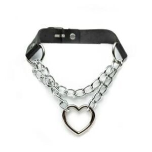 Black Silver Heart Shaped Chain Choker Necklace.