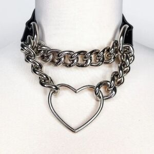 Chain Choker Collar, Heart Shaped Choker Necklace, S Choker, Gothic Chain Choker Collar