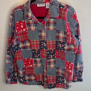 Vintage Cabin Creek Red Patchwork plaid Shirt/ Size Petite Large