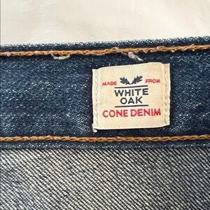 Dark blue denim with signature leather patch. Iconic red tab on pocket. Classic style.