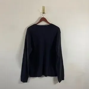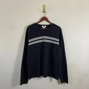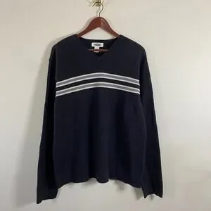 Old Navy Knit V-Neck Black Sweater White Gray Stripes Men's XL Cotton Grunge