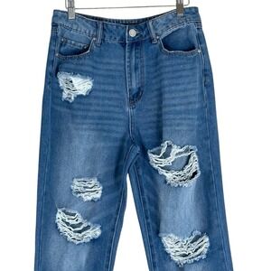 Indigo Rein High Rise Jeans Womens 28 Distressed Straight Leg Y2K Grunge Denim