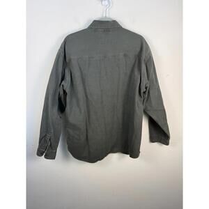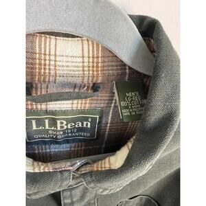 L.L. Bean Olive Green Flannel Lined Canvas Chore Snap Jacket Large Pockets