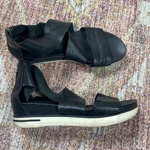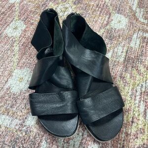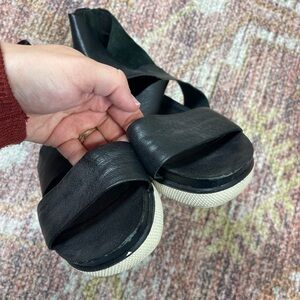 Eileen Fisher Sport Tumbled Leather Sneakers Sandals Black Size 8