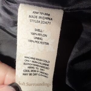 The Soft Surroundings Nylon Leopard Animal Print Lined Trench Rain Coat Jacket in size M is a stylish and versatile outerwear piece for women. Made from 100% nylon with a lined interior, this mid-length jacket features long sleeves and a zip closure. Perfect for various occasions including travel, party, casual wear, work, and business, it offers a regular fit and is machine washable for easy care. The animal print pattern adds a touch of nature-inspired flair, making it a fashionable choice for all seasons.