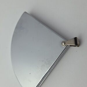 It is a sliding mirror design; you use your fingers to slide it open like a fan.