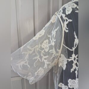 Plus Size Kimono Sz 1X Boho Hippie Floral Embroidered Cardigan Open Front Ivory