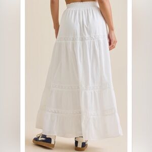 NWT Evereve white maxi skirt with lace details. Perfect for a stylish look.