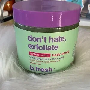 Revitalize your skin with fresh Melon Magic Body Scrub. Infused with licorice root and lactic acid for gentle exfoliation. Leaves skin smooth and refreshed.