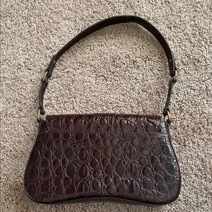 This stylish brown shoulder bag features a sophisticated crocodile pattern, perfect for any occasion. The gold buckle adds a touch of elegance.