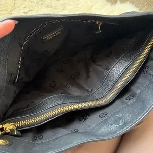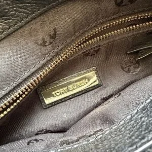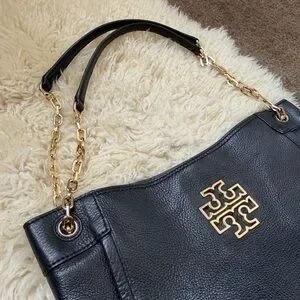 Tory Burch Britten small leather bag. Features a gold chain strap and iconic logo. Excellent condition.