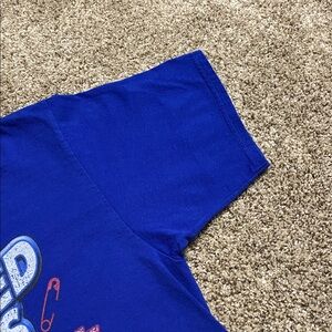 Vibrant blue t-shirt featuring a playful cartoon graphic. Perfect for casual wear.
