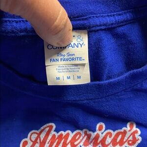 Blue Graphic T-Shirt with Cartoon Design americas offended flakes medium