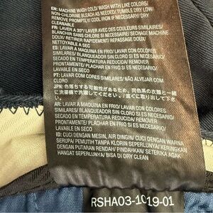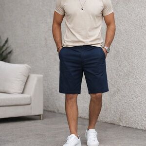 Classic Volcom navy blue chino shorts. Clean, casual style with subtle branding.