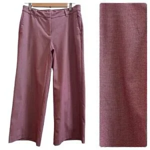 J Jill Red Houndstooth Print Size 8 Viscose Blend Wide Leg Pant 24.5 Inch Inseam