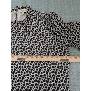 Rachel Zoe Size XL Black White Gray Heart Print Blouse High Neck Smocked Wrist