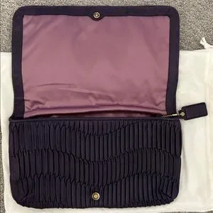 Coach Madison Gathered Dark Purple Pleated Clutch
