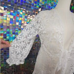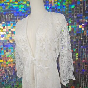Ember Floral Lace Duster Cardigan Womens Medium White Sheer Tie Front Maxi Boho