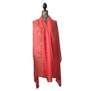 JCP Coral & White Polka Dot Viscose Wraparound Beach & Multi Purpose Wear Scarf