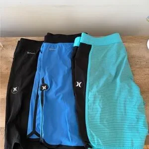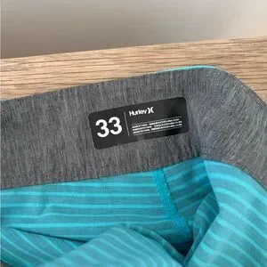 Hurley Phantom Board Shorts Black, Blue and Teal Striped size 33. Excellent condition