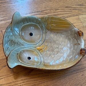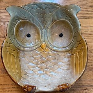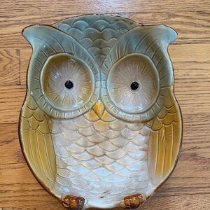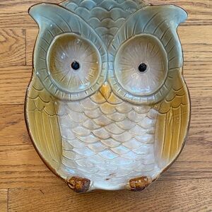 Charming ceramic owl dish art in soothing green and brown tones. Perfect for adding a touch of nature to your home decor. CUTE!