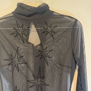 Chic black mesh bodysuit with bold star designs. Perfect for a stylish look. New with tag $44.95