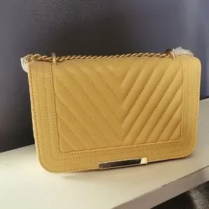 Yellow Quilted Shoulder Bag With Gold Chain Strap
