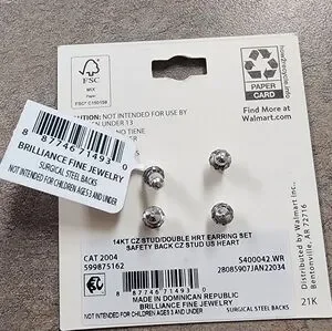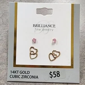 The earrings in the selected region are part of the Brilliance Fine Jewelry 14kt yellow gold cubic zirconia and double heart stud earring set. This set, which includes two pairs of earrings (a set of round/square cubic zirconia studs and a set of double heart studs), typically retails for around $58.