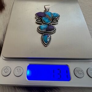 ❤️ Purple Dahlia Kingman Turquoise 3Stone Cow Head Huge Statement Pendant Unisex