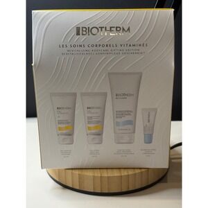 Biotherm Revitalizing Bodycare Gifting Edition set offers a complete citrus-infused routine for skin hydration and refreshment. This collection features the Eau Vitaminée line, known for its uplifting essences of orange and grapefruit. The set includes a revitalizing shower gel and a hydrating body milk to leave skin feeling soft and energized. Also included is the Biomains hand treatment to protect against dryness and a Beurre de Lèvres lip balm for soothing lip care.