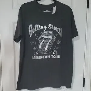 Short sleeve tee with Rolling Stones graphic. Features classic logo and tour design. Comfortable and stylish.