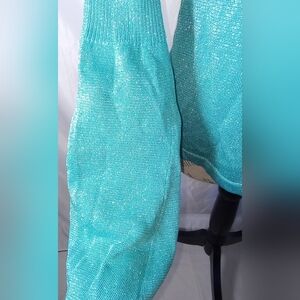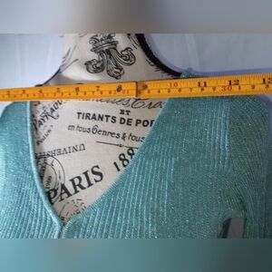 Vintage Bisou Bisou Teal Shimmer Shrug Layering Top Open Front S 90s Y2K