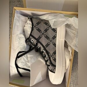 BNWT Michael Kors Logo Jacquard High-Top Sneakers β Womenβs Size 9