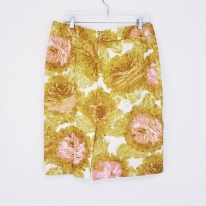 Talbots Womens Skirt Size 10 Yellow Pink Floral Straight Pencil Lightweight Lined